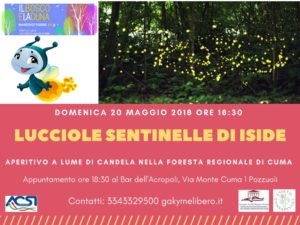 In rete con l’associazione “L’Orto Consapevole” presentiamo anche le date dell’evento” Aperitivo con le lucciole” sempre nella Foresta Regionale di Cuma: domenica 27 maggio, venerdì 1 giugno, sabato 9 giugno.